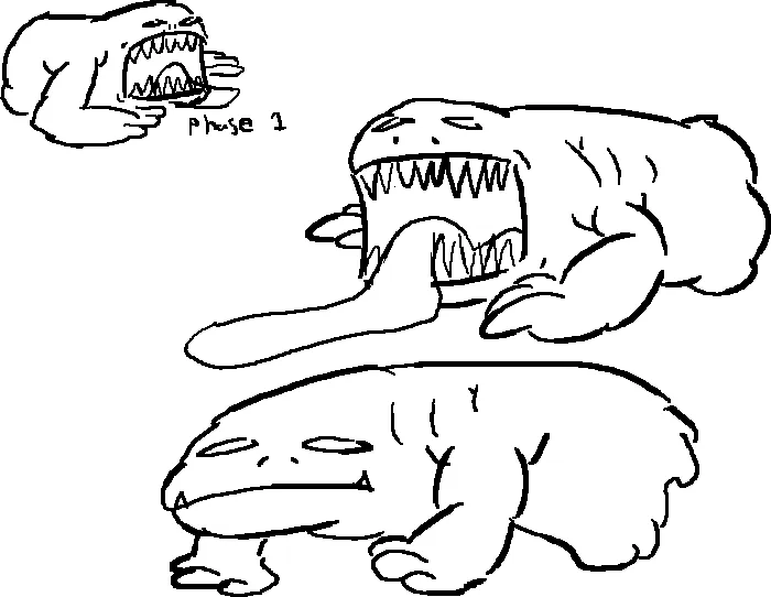 i still cant believe sam cranked this out in like 20 minutes. fun fact, the final version of the model actually has a blowhole. originally instead of having THE DEVICEs in every stage, the fiend was going to spit a seed out of its blowhole for you instead. i guess this means its cetaceous???